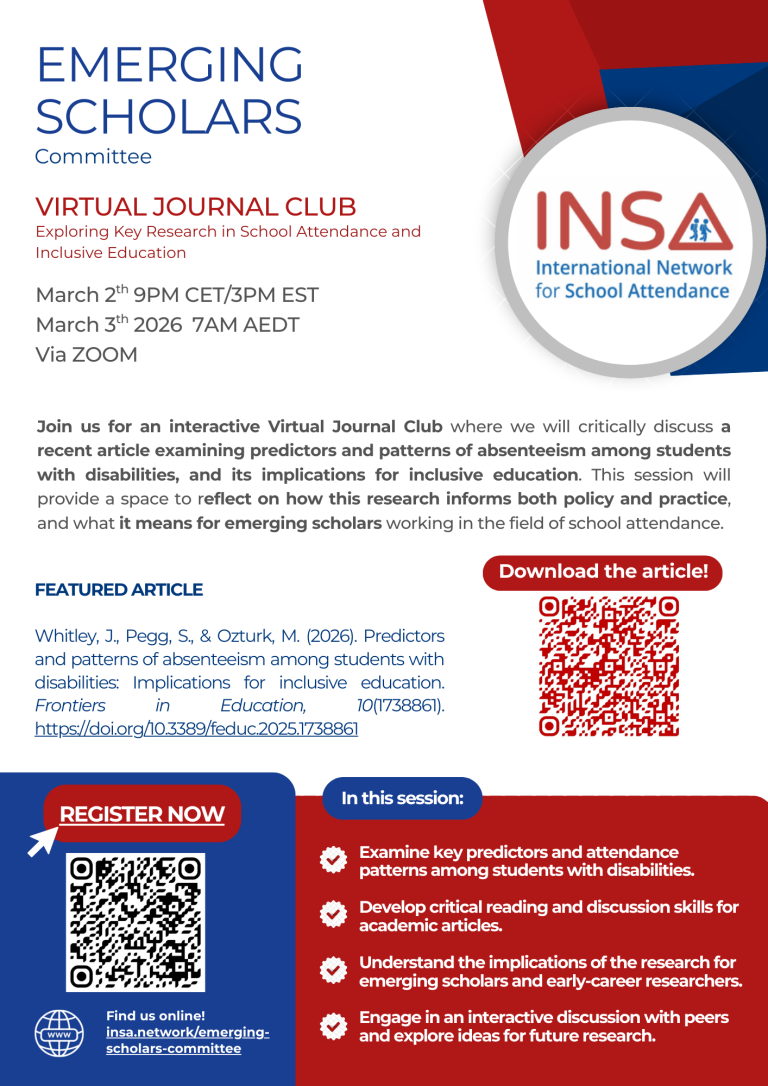 In this session, we will review the article: Whitley, J., Pegg, S., & Ozturk, M. (2026) Predictors and patterns of absenteeism among students with disabilities: implications for inclusive education. Frontiers in Education,10. Article 1738861. https://doi.org/10.3389/feduc.2025.1738861